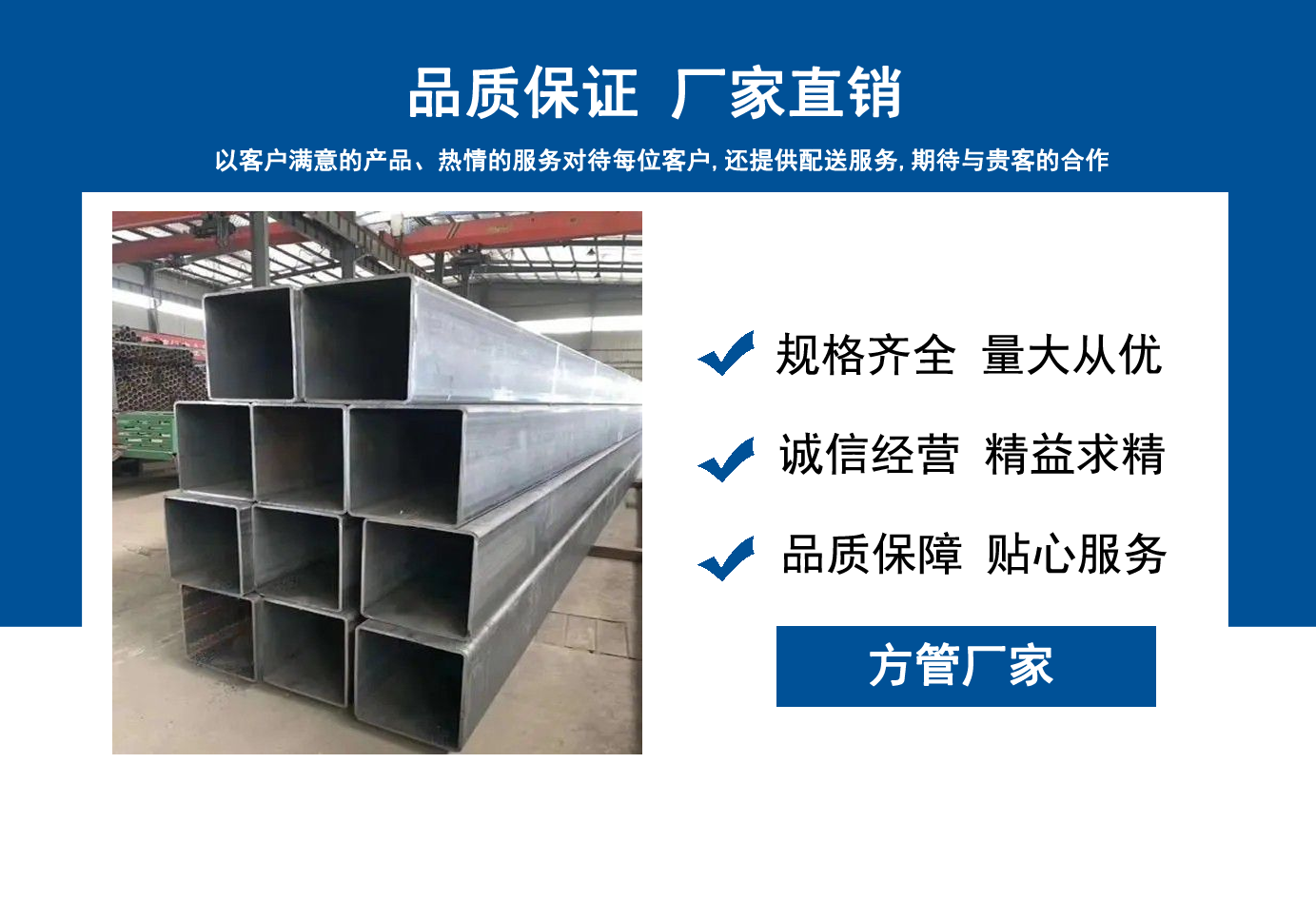 山東方管廠主要生產Q355B方管,Q355C方管,Q355D方管,Q355E方管,低合金方管等,曾多次為客戶解決了各種無縫管疑難問題,經不斷的創新與努力,得到了客戶良好的信譽和稱贊?! 」颈匈|量、服務是我們尋求發展的唯一途徑,為客戶提供極具市場競爭力的高品質產品,愿與客戶一起進步、共享成功! 我公司秉承“誠信經營,服務周到”的經營原則,全力以赴,給客戶周到滿意的服務?!罢\信、專業、認真、服務”是我們的宗旨。幾年來我們用專業的技術和周到的服務贏得了廣大客戶和供應商的信賴,與各大企業有著廣泛的合作和聯系,受到了業內好評。我們會以優良的產品、優惠的價格、優先的貨期、優良的服務,珍惜客戶給予我們的每一個機會。...